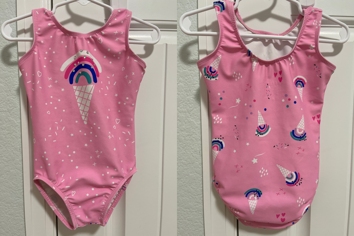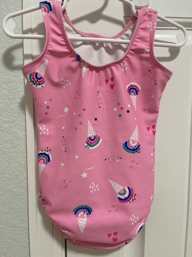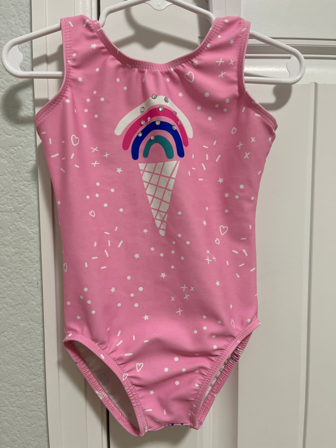 Pink Destira leotard with ice cream and sprinkles! Child size XXS in very good used condition.