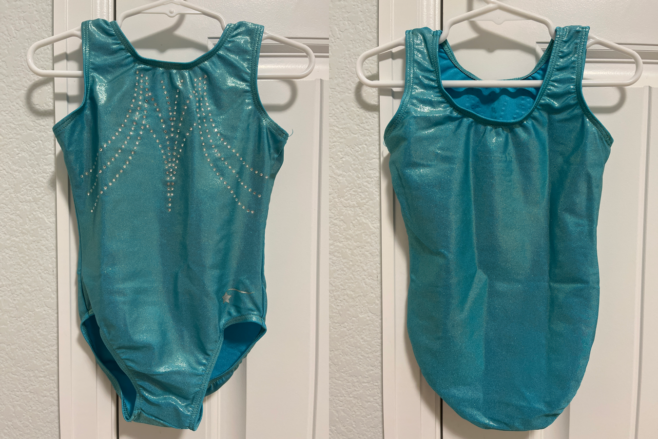 Pretty blue leo with overall gold shimmer and crystals on the chest. It’s in great condition, I don’t see any missing crystals or signs of wear. Very pretty!