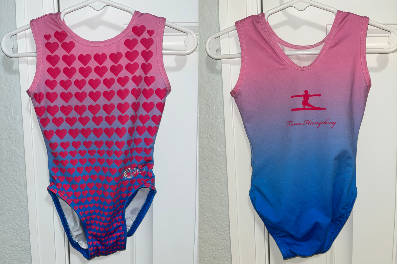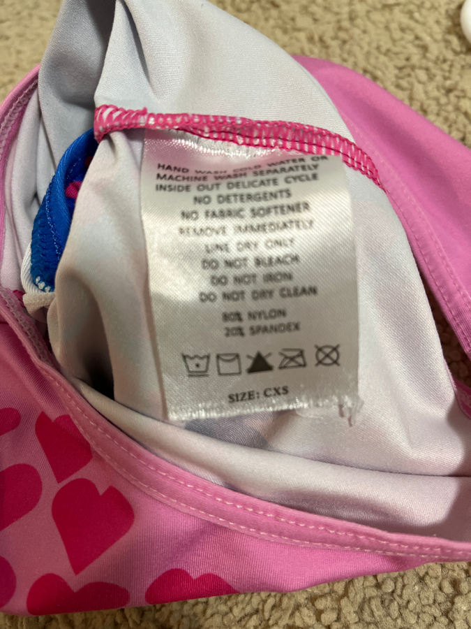 Higo child XS in VGUC. Cute pink to blue ombré with pink hearts!