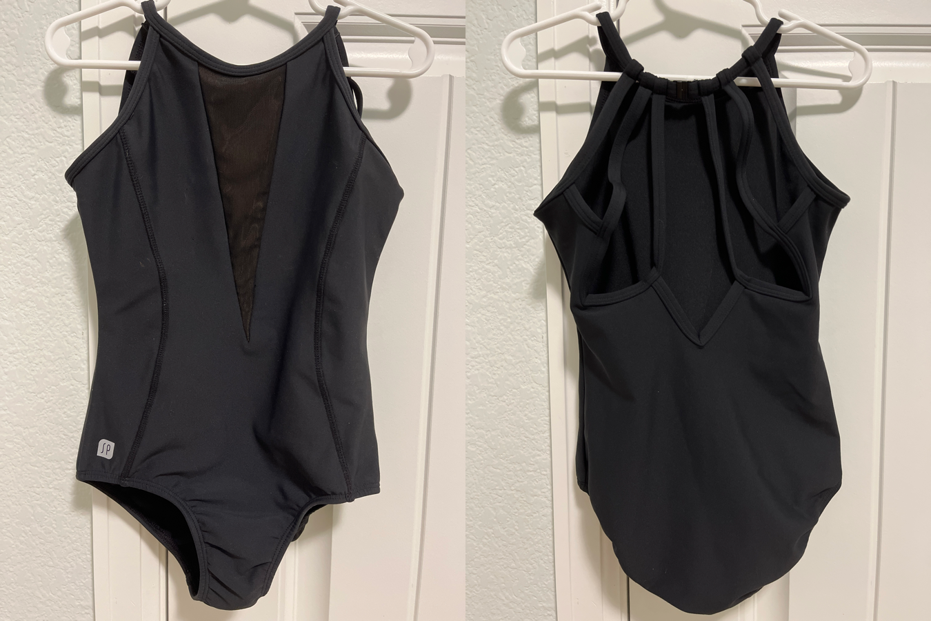 All black SP leotard with really cute back! Good condition because of some small pricks, but since it’s black you can’t see them.