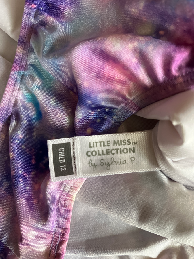 Little Miss Collection by Sylvia P with rainbow and purple tie dye – very cute on! Good in child size 12.